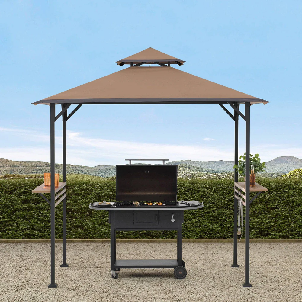The material of your shelving plays a significant role in durability and maintenance. Stainless steel and powder-coated metal are excellent choices for withstanding heat, smoke, and outdoor weather. Wood can be used as well, but make sure it is treated to resist moisture and heat. At SUNJOY, their grill gazebos are designed with strong support beams, making them compatible with both metal and wooden shelving options. Consider using materials that complement the gazebo’s finish for a cohesive outdoor look.